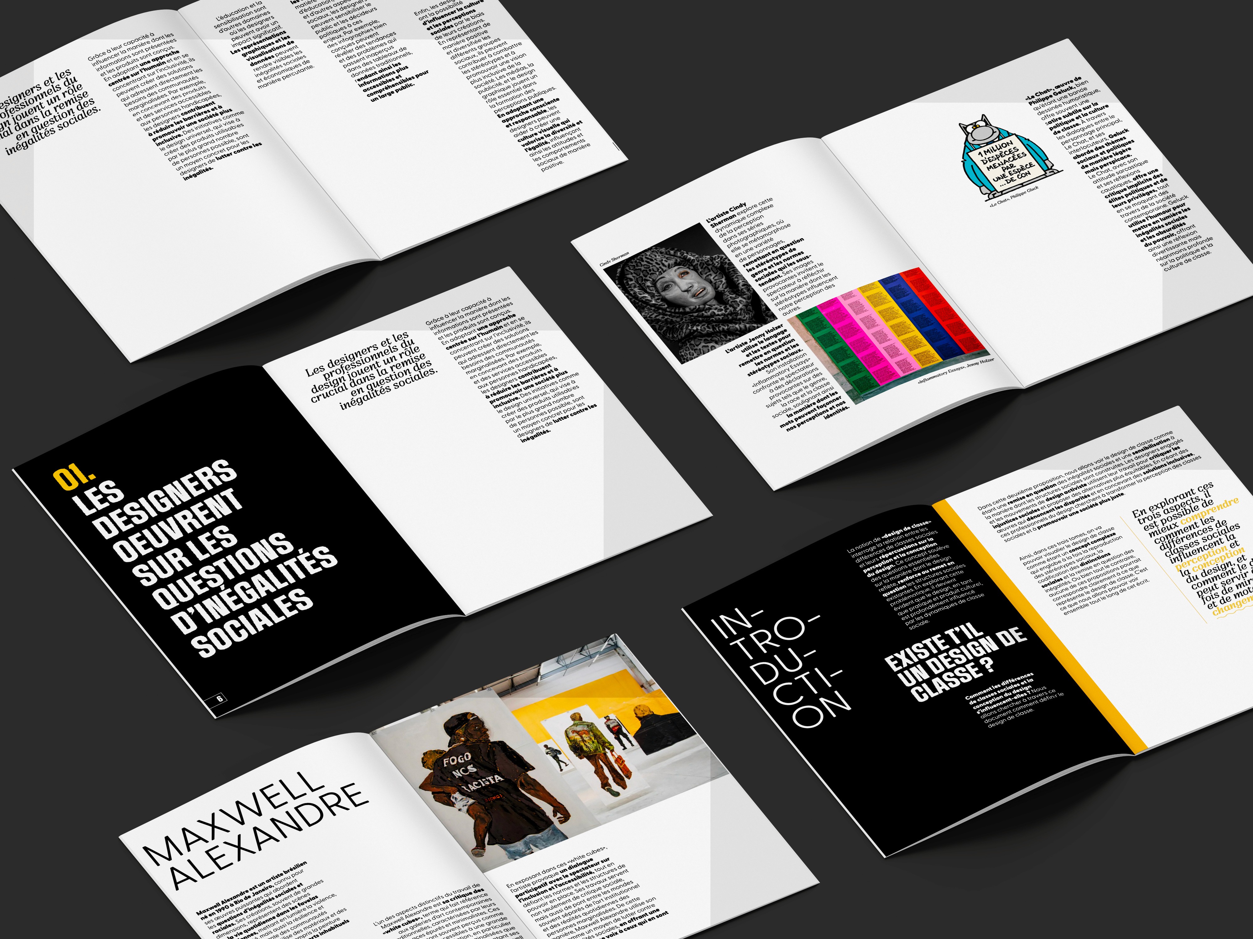 J’ai réalisé mon mémoire de M1 autour de la question : « Existe-t-il un design de classe ? ». Ce travail s’articule autour de trois propositions, chacune explorant les codifications graphiques et les stéréotypes sociaux associés à la notion de classe social. Ces propositions ont pris forme à travers trois éditions distinctes, différenciées par un code couleur spécifique, permettant d’identifier et de mettre en valeur les intentions propres à chaque approche.